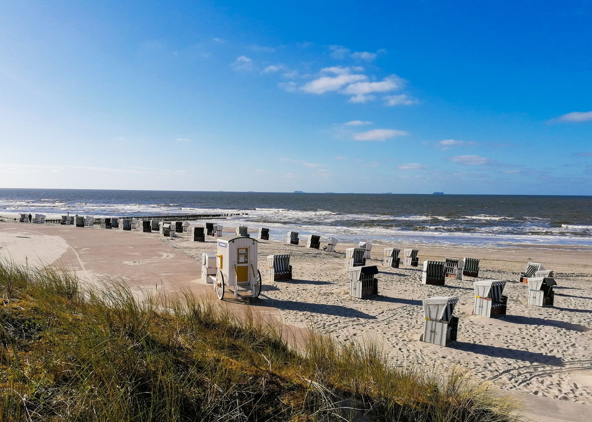 Der Wangerooger Strand ist ideal für einen entspannten Nordseeurlaub: Hier erwarten Sie feiner, heller Sand, flaches Wasser zum Baden und gemütliche Strandkörbe, die Sie mieten können. Ob Sonnenbaden, Schwimmen oder ausgedehnte Spaziergänge entlang der Dünen und der Promenade – der Strand bietet für jeden Moment das passende Ambiente. Familien fühlen sich ebenso wohl wie alle, die einfach die Ruhe und die frische Nordseeluft genießen möchten. In Strandnähe laden zahlreiche Cafés und Imbisse zu einer kleinen Pause ein.
